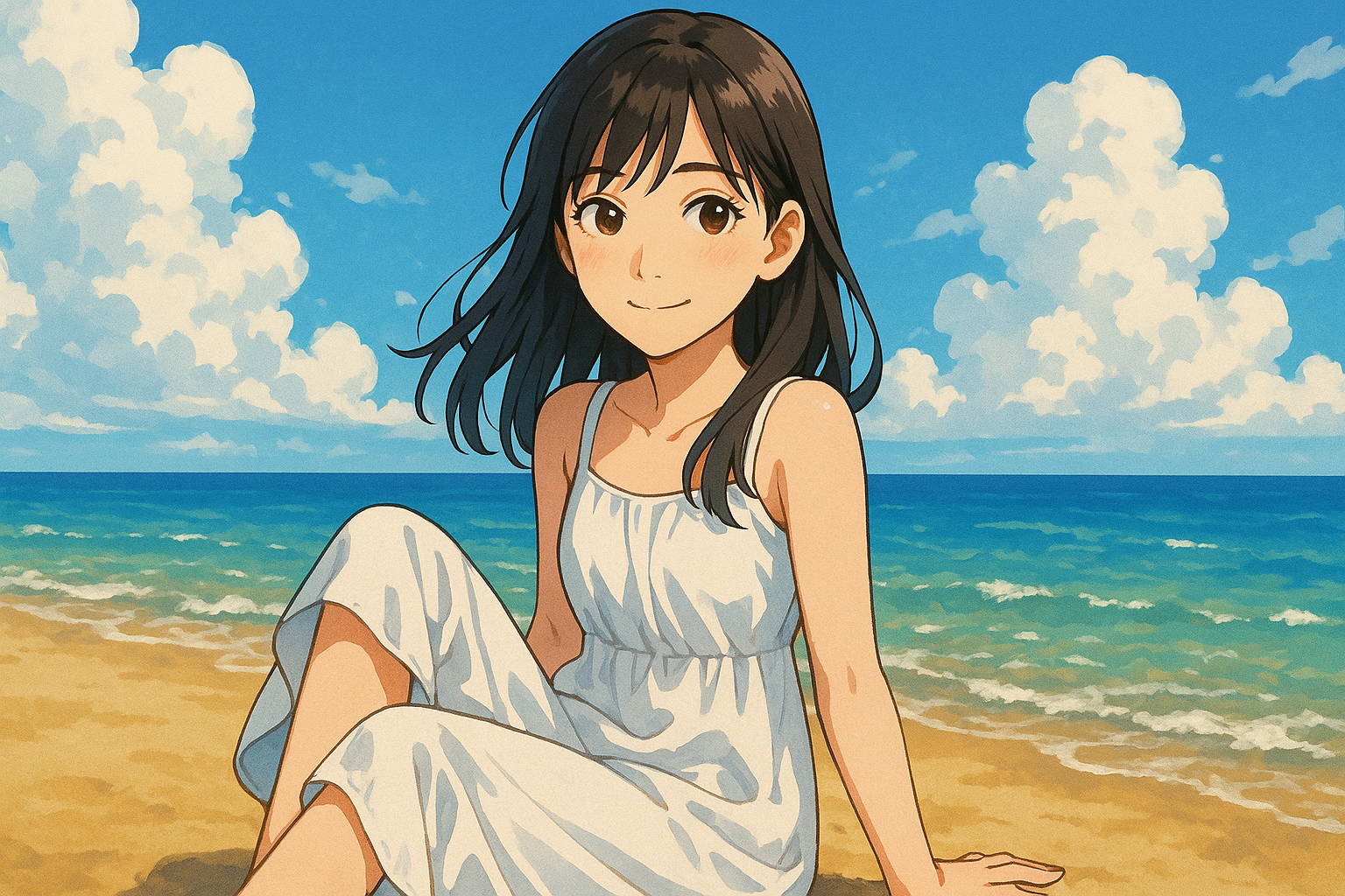 瀬戸内の穏やかな空気の中で笑う彼女の姿は、まるで映画のワンシーンのように美しく、見る人の心を惹きつけます。
