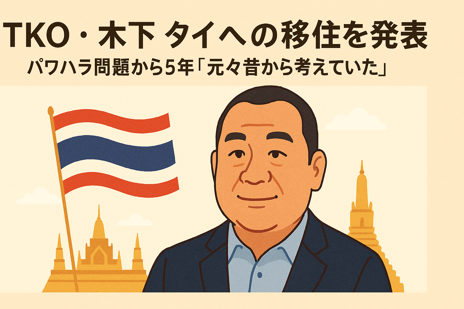 お笑いコンビTKOの木下隆行さんが、タイへ移住することを発表しました。