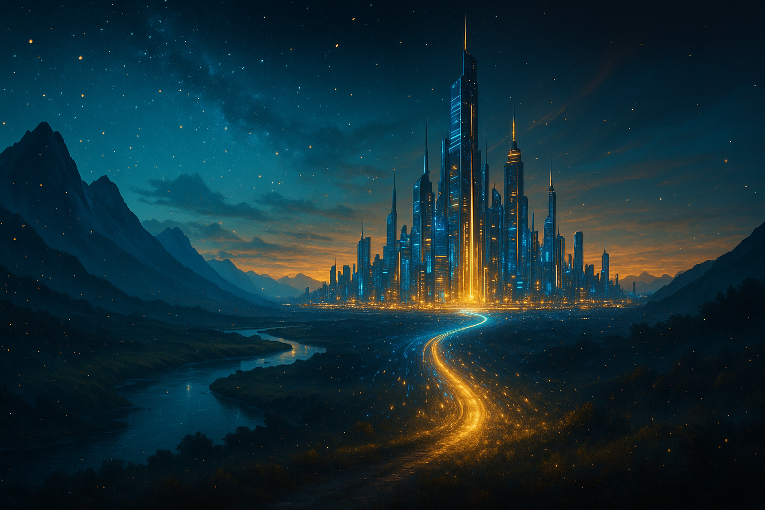 ロケ地推定:都市シーンは海外の近未来都市型スタジオセットの可能性が高く、自然シーンはCGと実写を融合したものと見られます。背景の山並みはニュージーランドやアイスランドの景観に類似。