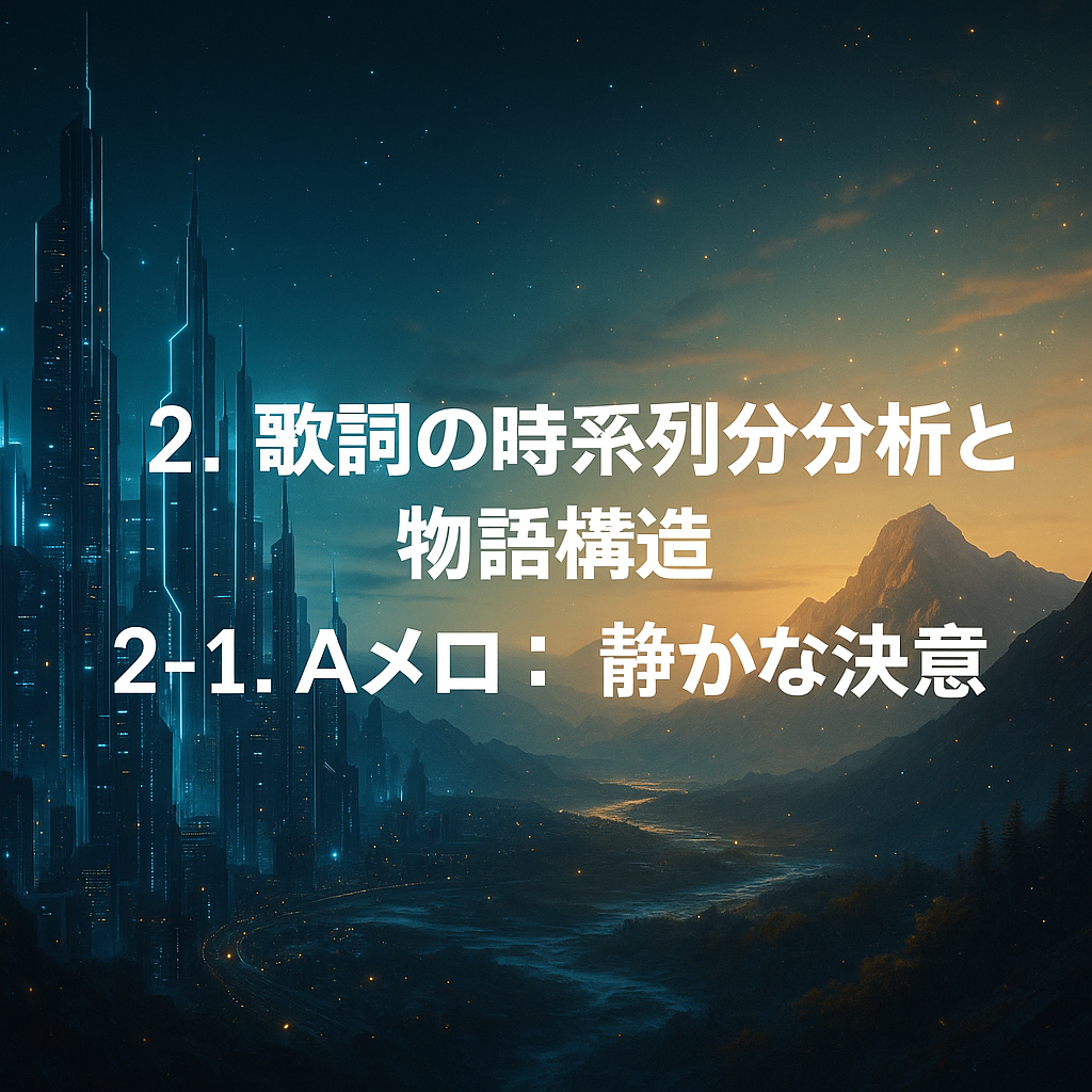 低音中心のイントロから始まり、Aメロでは「今まで見たことのない景色を求める」主人公の内面が描かれます。静かなトーンの中に、「現状を壊す覚悟」が隠れています。
