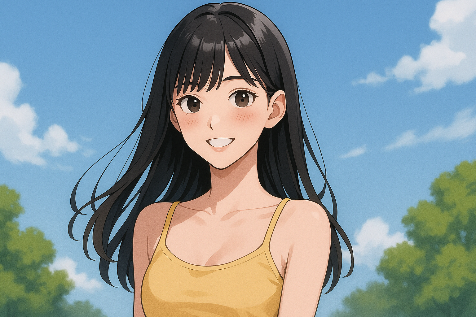 また、肌の透明感や笑顔の表情も相まって、健康的で親しみやすい美しさが光っています。